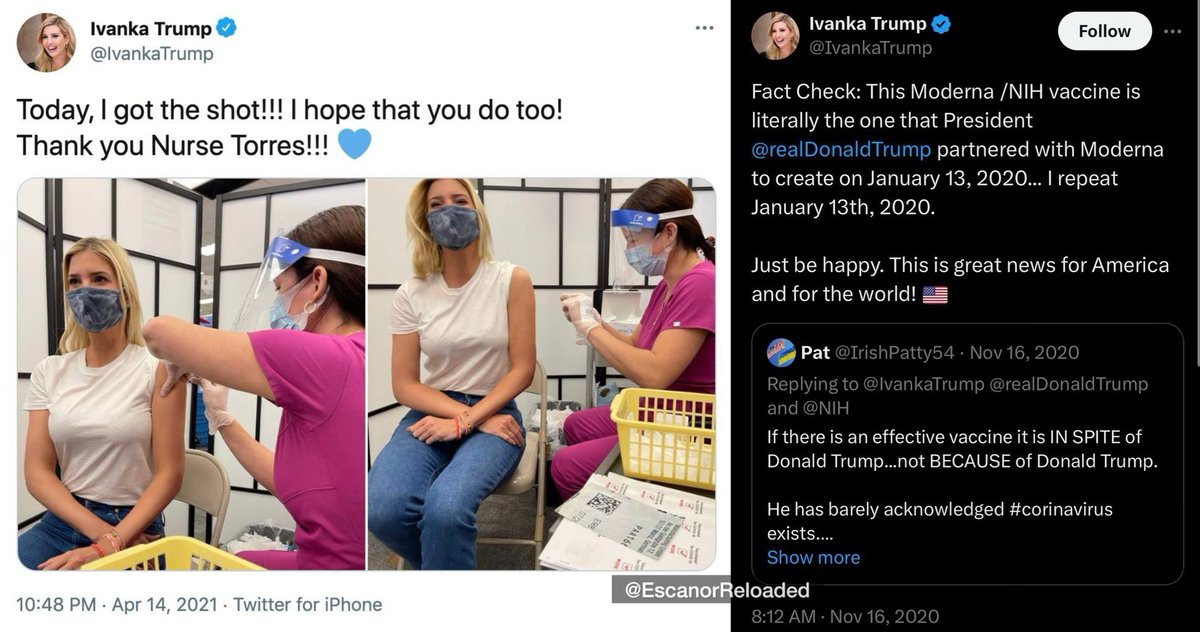 Remember when WEF Ivanka received the vaccine wearing a Red Kabbalah string and encouraged us to get vaccinated? Or how about when Ivanka CLARIFIED that Donald Trump is the Father of the vaccine?👀 “FACT CHECK” What short memories you have… https://t.co/tZ69DlqTca