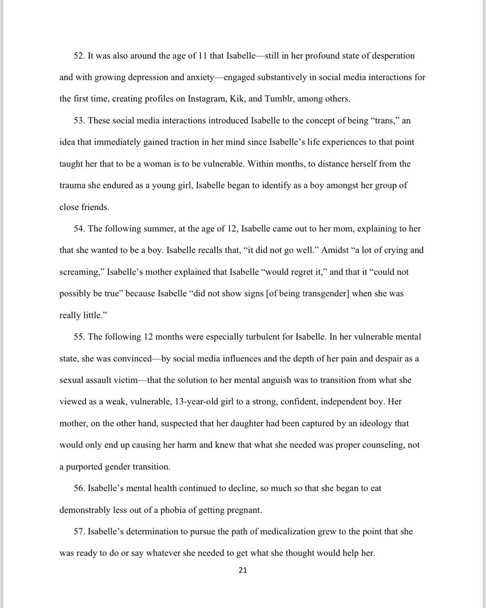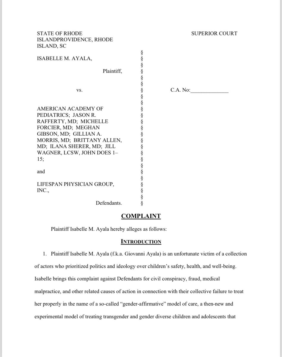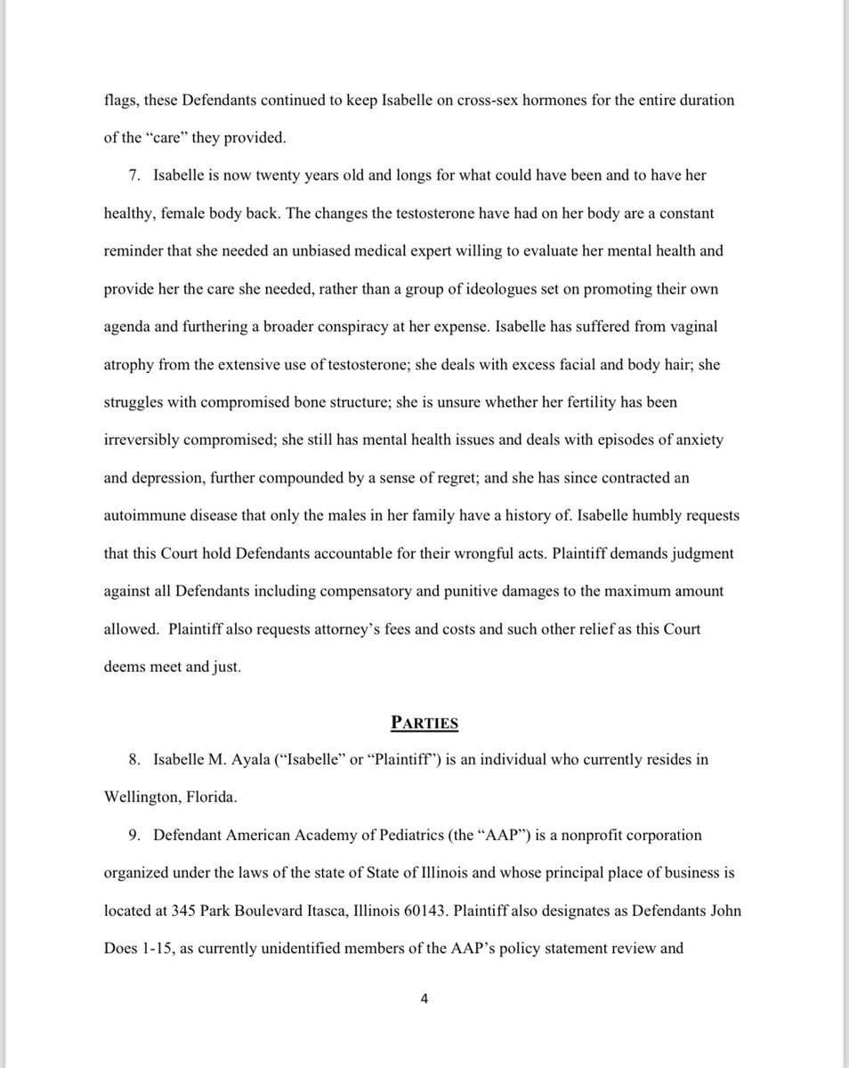 Massive news! The American Academy of Pediatrics and several leading doctors are being sued for civil conspiracy, fraud, and medical malpractice! Isabelle Ayala was just 14 years old and struggling with trauma, depression, cutting, and suicidal ideation when she was coerced onto testosterone by ideologically captured doctors who push childhood sex changes. Isabelle has suffered from vaginal atrophy from the extensive use of testosterone; she deals with excess facial and body hair; she struggles with compromised bone structure; she is unsure whether her fertility has been irreversibly compromised; she still has mental health issues and deals with episodes of anxiety and depression, further compounded by a sense of regret; and she has since contracted an autoimmune disease that only the males in her family have a history of.