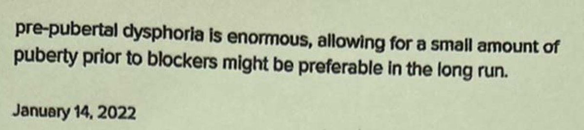 But do they? When they are between 9 and 13? I sure didn’t. Does any parent really believe this? Solid long-term data on how many children who transition but decide later it was a mistake is hard to find, in large part because the procedures are relatively new and the studies often have very poor follow-up. But without a doubt, there are some. They are walking around today, testifying in courts and legislatures, opining all over the web, telling similar stories of rushed judgments, minimal safeguards, inadequate gate-keeping and agonizing regret that as children they made irreversible decisions they could not meaningfully consent to.