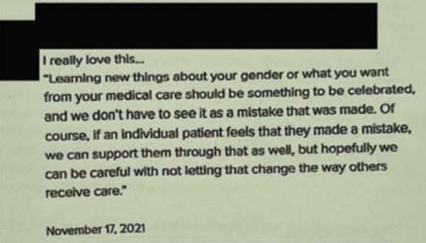 “Oh, the dog isn’t doing it for you?” Many gender medicine victims are filled with regret that they were sterilized. Nobody knows this more than the doctors who mistreated them. At times, their response to such regret appears callous. “I follow a lot of kids into their mid twenties, I'm always like, ‘Oh, the dog isn't doing it for you, right?’ They're like, ‘No, I just found this wonderful partner and now we want kids. So you know, it doesn't surprise me.”