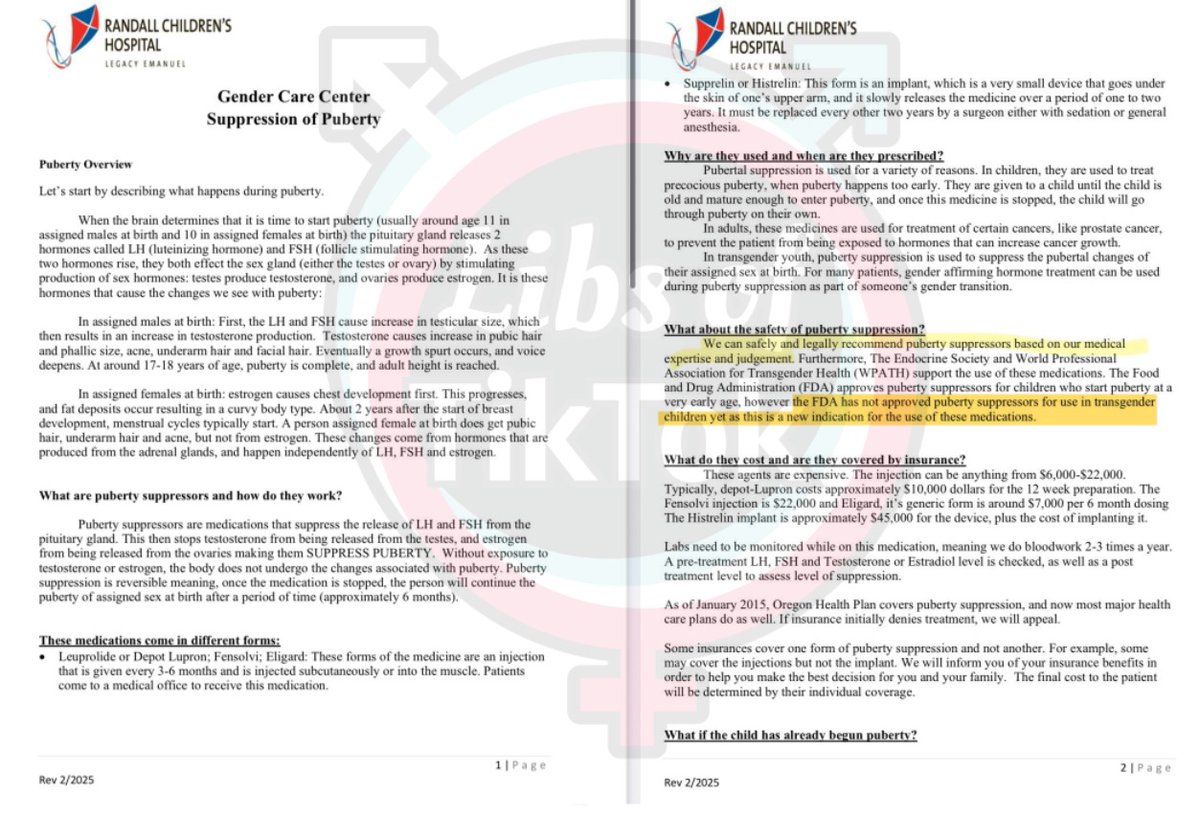The hospital is PROMOTING puberty blockers for "trans kids" despite admitting they are not FDA-approved. EVIL. https://t.co/kEqA4IVNzj