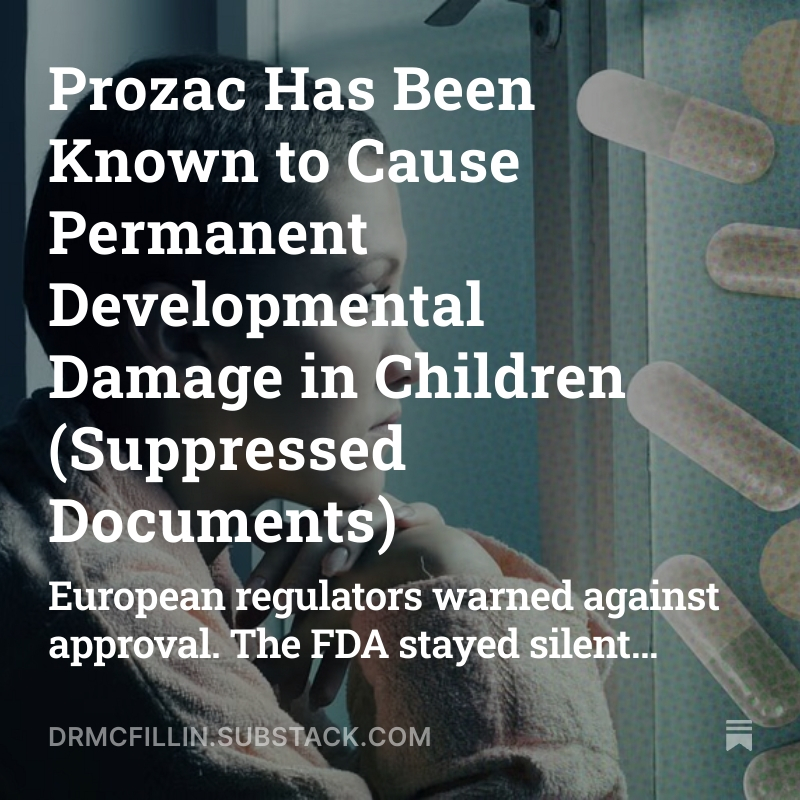 8/9 The full investigation includes: The suppressed European documents Eli Lilly's damning admissions The FDA timeline of complicity What parents MUST know now Why prescribers are in the dark This ends now. Read Now: https://drmcfillin.substack.com/p/prozac-has-been-known-to-cause-permanent