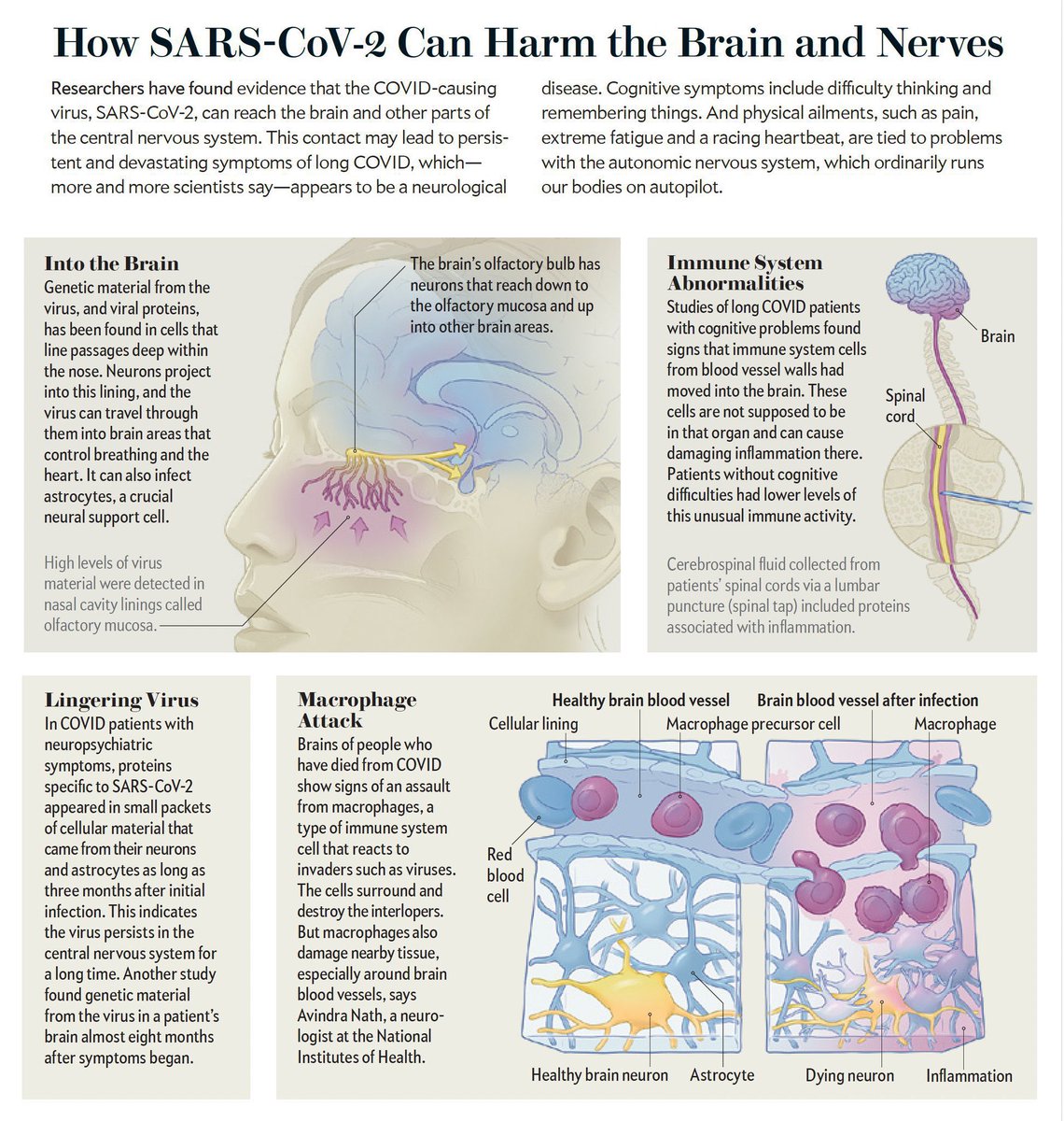 7. In this SciAm article (published Feb 2023), @SutherlandPhD discusses the various long-term neurological aspects of Covid. She spent a year compiling evidence from an ever-increasing mountain of sources to write this detailed feature. 🔗 https://scientificamerican.com/article/long-covid-now-looks-like-a-neurological-disease-helping-doctors-to-focus-treatments1/