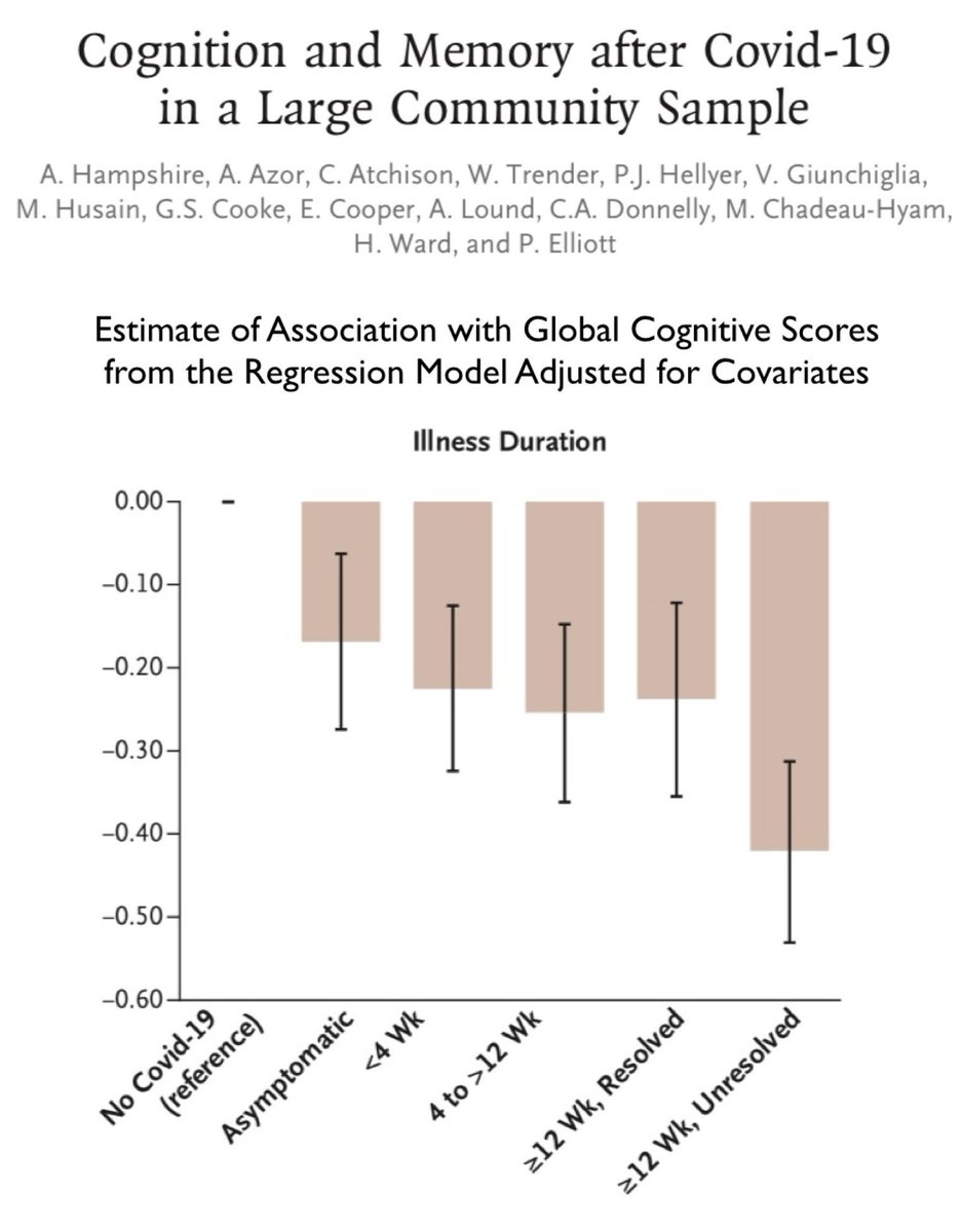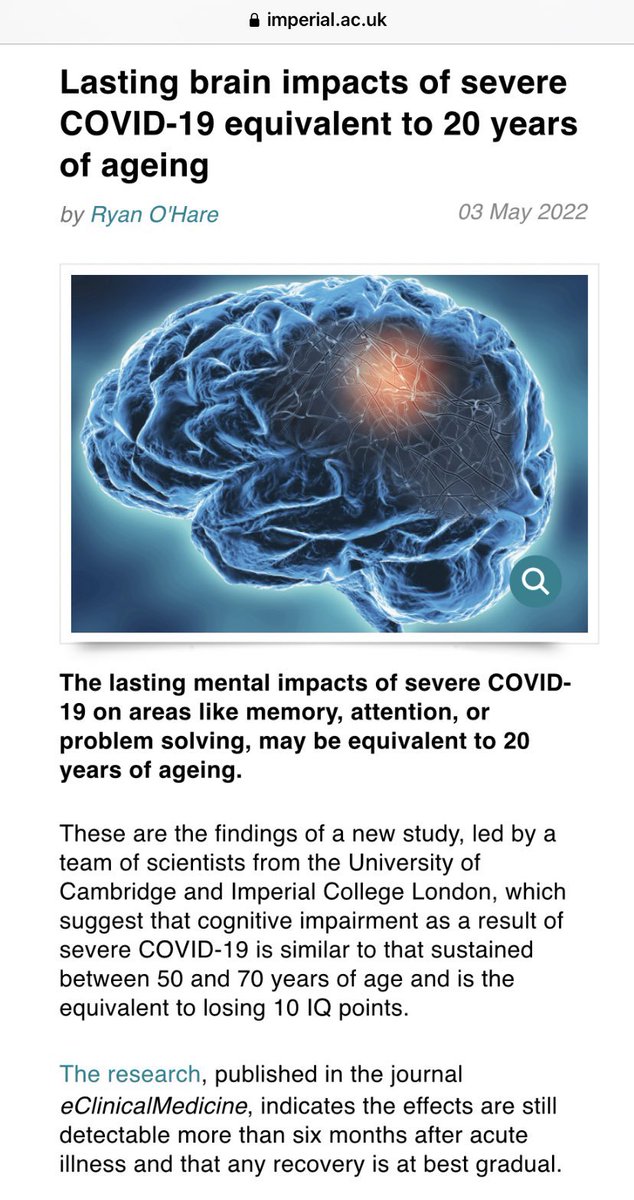 11. This study (published May 2022) was led by a team of scientists from Cambridge University & Imperial College London. The study showed that the lasting cognitive impacts of Covid could be equivalent to 20 years of ageing and losing 10 IQ points. 🔗 https://imperial.ac.uk/news/236034/lasting-brain-impacts-severe-covid-19-equivalent/