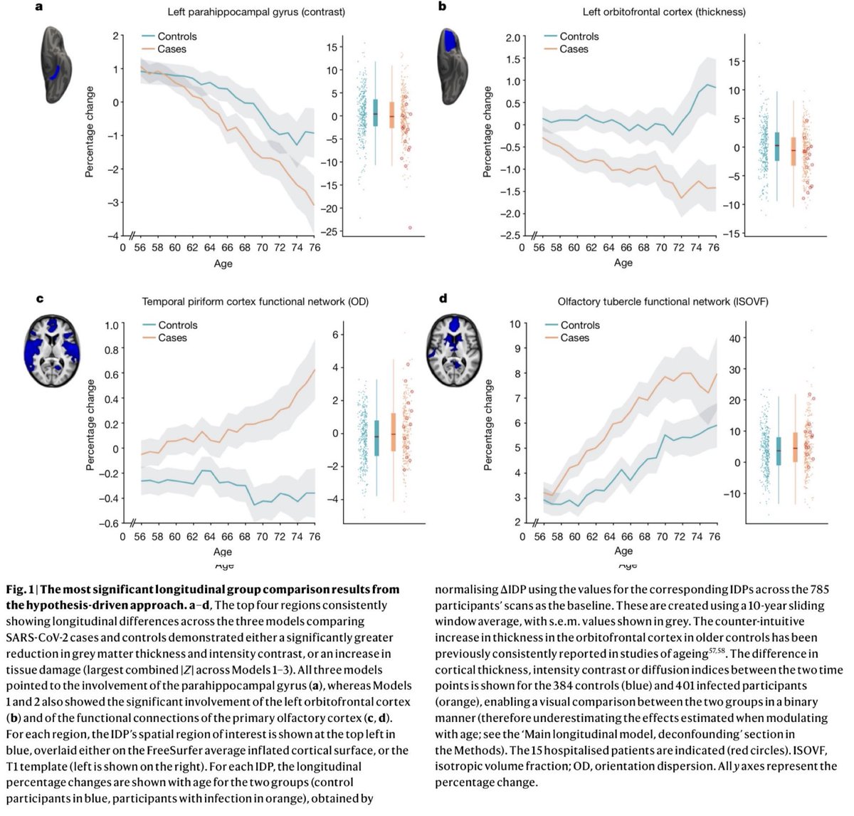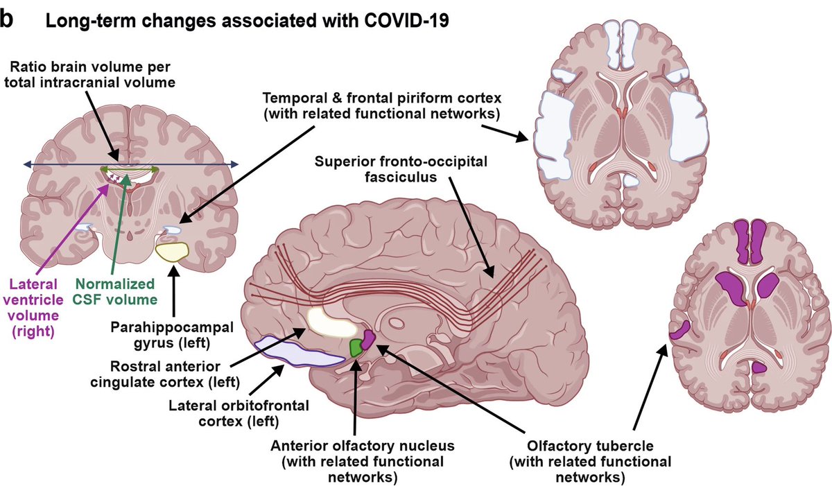 12. In this study (March 2022), researchers from Oxford Uni analysed MRI brain scans taken BEFORE & AFTER Covid infection from participants in the UK Biobank study. Scans revealed that even mild Covid is associated with brain structure alterations. 🔗 https://nature.com/articles/s4158