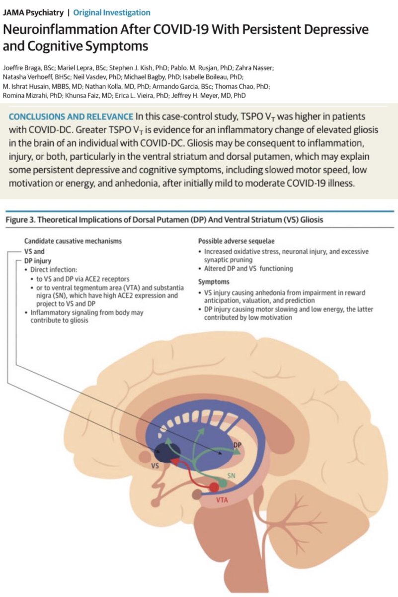 13. This study from Canada (published in May 2023) found elevated levels of inflammation in the brains of people with Long Covid. Researchers found that inflammation was present even in the brains of those who experienced a mild Covid infection. 🔗 https://watermark.silverchair.com/jamapsychiatry_braga_2023_oi_230033_1690301850.66494.pdf