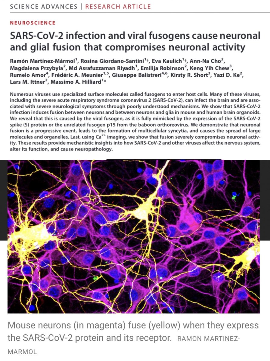 15. In this study (published June 2023), researchers at The University of Queensland showed how Covid infection can cause brain cells to fuse, initiating malfunctions that lead to chronic neurological symptoms. 🔗 https://www.science.org/doi/10.1126/sciadv.adg2248