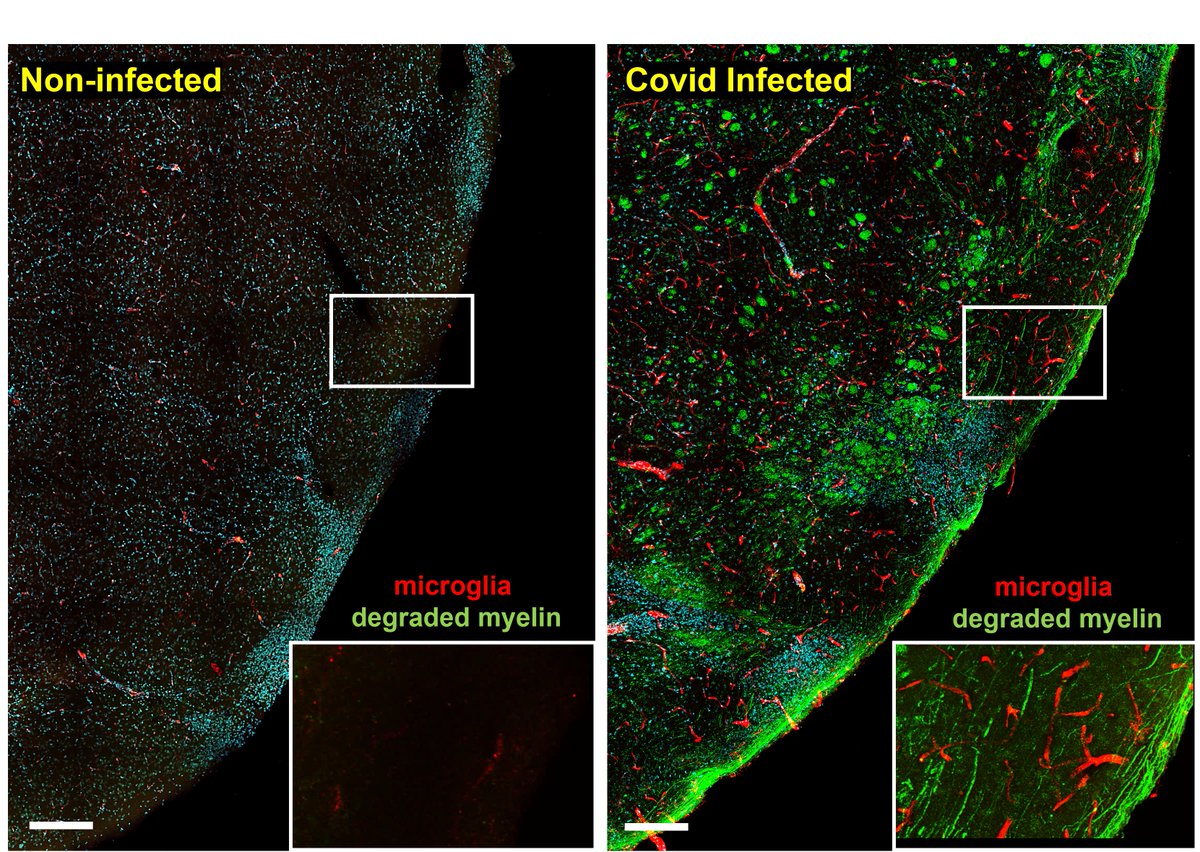 21. This study (Oct 2022) used high-res microscopy to investigate Covid’s effect on the brain in monkeys. 7 days post-infection, SARS-CoV-2 was detected in the olfactory cortex & connected areas, accompanied by neuroinflammation & neuronal damage. 🔗 https://www.sciencedirect.com/science/article/pii/S2211124722014346