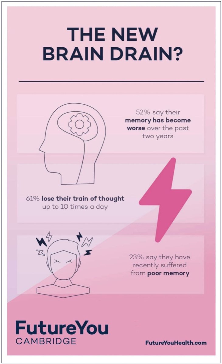 26. An online survey of over 2,000 respondents conducted in the UK in April 2022 found: ▪️Over half (52%) of respondents said their memory had become worse over the past 2 years. ▪️61% said they now lose their train of thought up to 10 times a day. 🔗 https://futureyouhealth.com/knowledge-centre/brain-survey