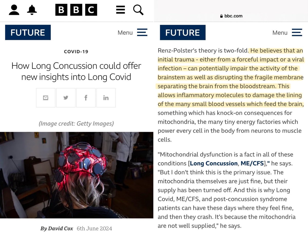 27. This article provides a fascinating insight into current research being conducted by neurologists which explores the striking similarities between Long Covid and post-concussion syndrome (‘Long Concussion’). (Links to studies are in the article). https://www.bbc.com/future/article/20240606-how-long-concussion-could-offer-new-insights-into-long-covid