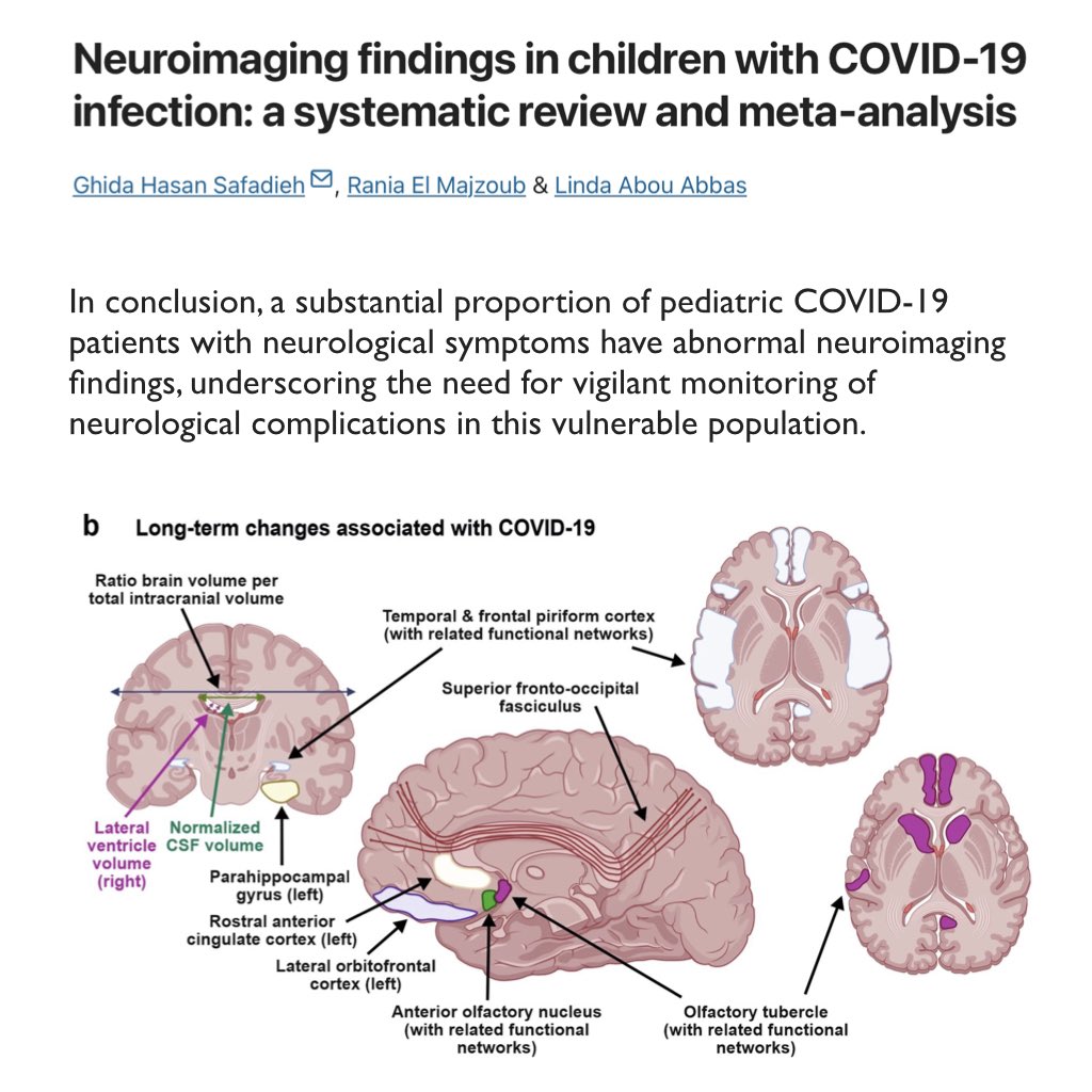 4. This systematic review (published 27 Feb 2024) found that 44% of children with post-Covid neurological symptoms had abnormal neuroimaging findings, eg. ADEM-like lesions, encephalitic pattern, myelitis, transient splenial lesions & other anomalies. 🔗 https://nature.com/articles/s41598-024-55597-2