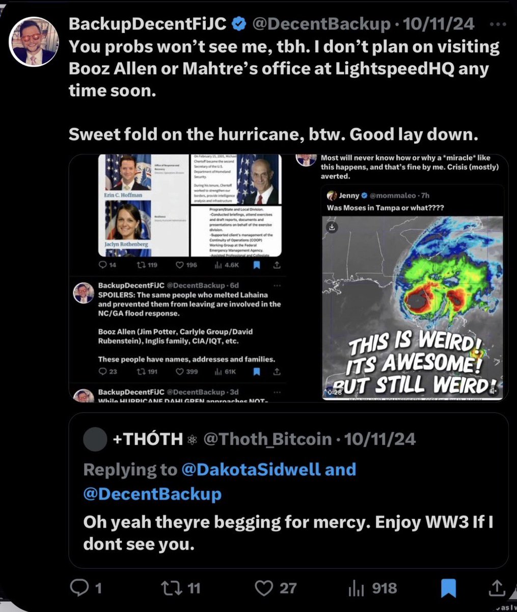 I know you, Margo. Better than anyone else here. And I know what you traitors did in Buncombe County/Asheville, NC w/FEMA, Cadmus, Bridgette Herring, Samaritan’s Purse, RAA, Booz Allen, NOAA, Oracle, Apollo, UJA-Federation (Mossad), United Cajun Navy, IBM, Prometheus, Betar, etc. https://t.co/YVl85J4HCE