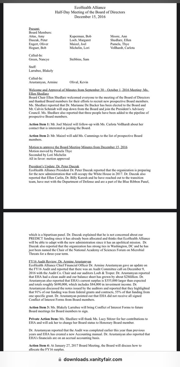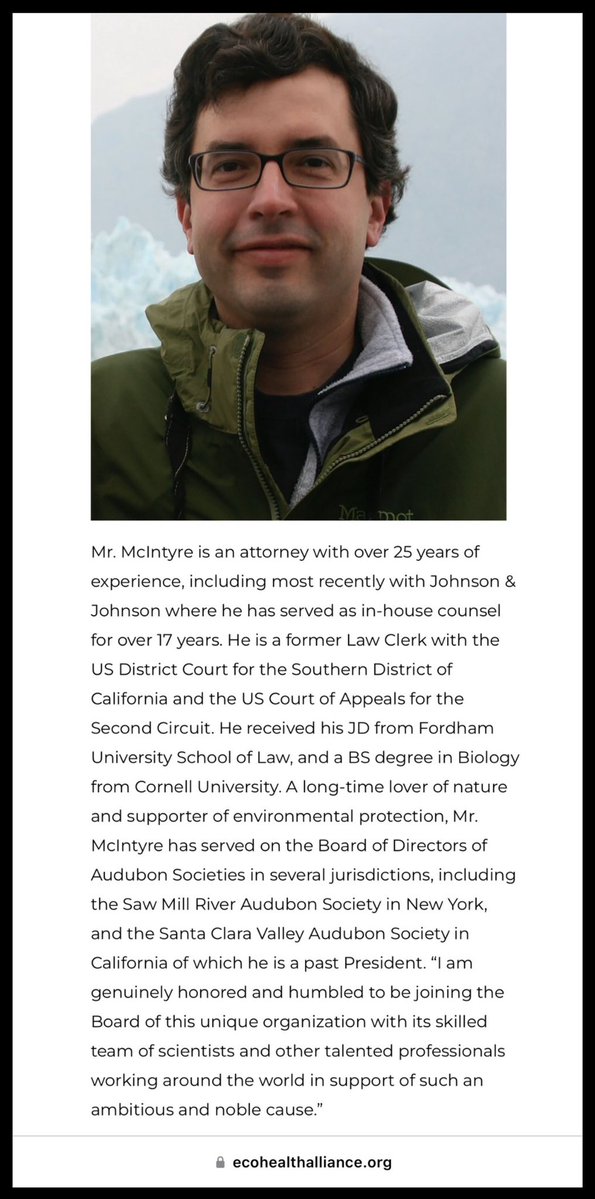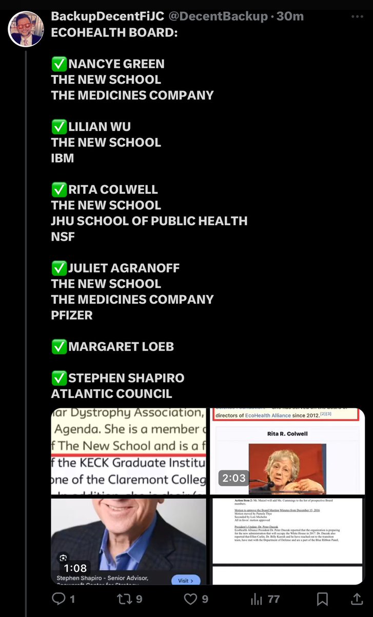 ECOHEALTH BOARD: ✅NANCYE GREEN THE NEW SCHOOL THE MEDICINES COMPANY ✅LILIAN WU THE NEW SCHOOL IBM ✅RITA COLWELL THE NEW SCHOOL JHU SCHOOL OF PUBLIC HEALTH NSF ✅JULIET AGRANOFF THE NEW SCHOOL THE MEDICINES COMPANY PFIZER ✅MARGARET LOEB ✅STEPHEN SHAPIRO ATLANTIC COUNCIL https://t.co/4uqjA5RtOe