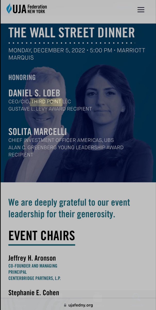Ok, so… MARGARET LOEB from the ECOHEALTH ALLIANCE BOARD is the WIFE of DANIEL LOEB! The SAME DANIEL LOEB from… ✅THIRD POINT CAPITAL ✅BITWISE w/HENRY KRAVIS of KKR ✅HAWAII ENERGY OPS LLC and… ✅HONOREE of the WALL STREET DINNER hosted by MARC ROWAN (UJA/Apollo/Mossad)!🤯 https://t.co/FjEi89fTvS