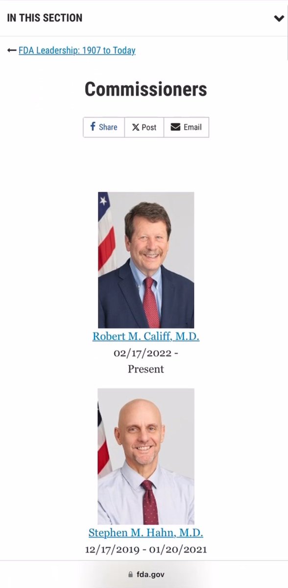 U.S. FOOD AND DRUG ASSOCIATION (FDA) 💥💥💥💥💥💥💥💥💥💥💥💥💥💥💥 The 4 FDA COMMISSIONERS who led us all the way up to and THROUGH the pandemic are more than meets the eye. Lots more. (In reverse order) ✅MARGARET HAMBURG (05/09-04/15) ✅ROBERT M. CALIFF (02/16-01/17) ✅SCOTT GOTTLIEB (05/17-04/19) ✅STEPHEN M. HAHN (12/19-01/21) ✅ROBER M. CALIFF (02/22-PRESENT)