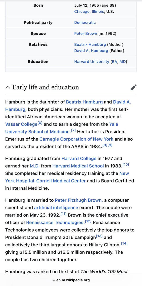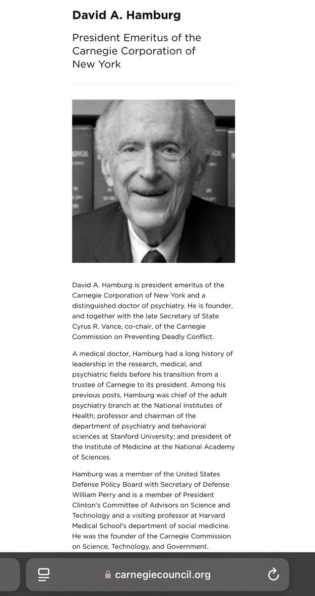 Here’s some of those receipts from the previous tweet, and a bit more info on her dad, DAVID A. HAMBURG, and a little hint as to what CARNEGIE CORPORATION is all about today. As you can see, this bitch’s bio is nutz.🤣