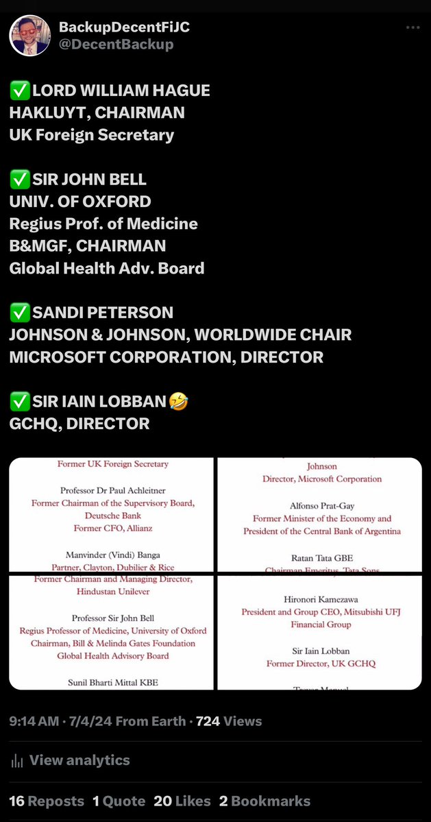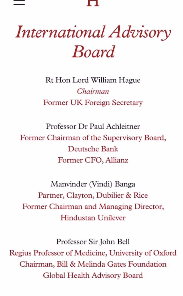 I repeat, SIR JOHN BELL, CHAIRMAN of the GLOBAL HEALTH ADVISORY BOARD for BILL & MELINDA GATES FOUNDATION, is on the INTERNATIONAL ADV BOARD of HAKLUYT (East India Co.). *As is SANDI PETERSON, WORLDWIDE CHAIRMAN of J&J & PARTNER at CD&R. *J&J’s IHC is on ECOHEALTH’s BOARD. https://t.co/aFsNaCrCdr