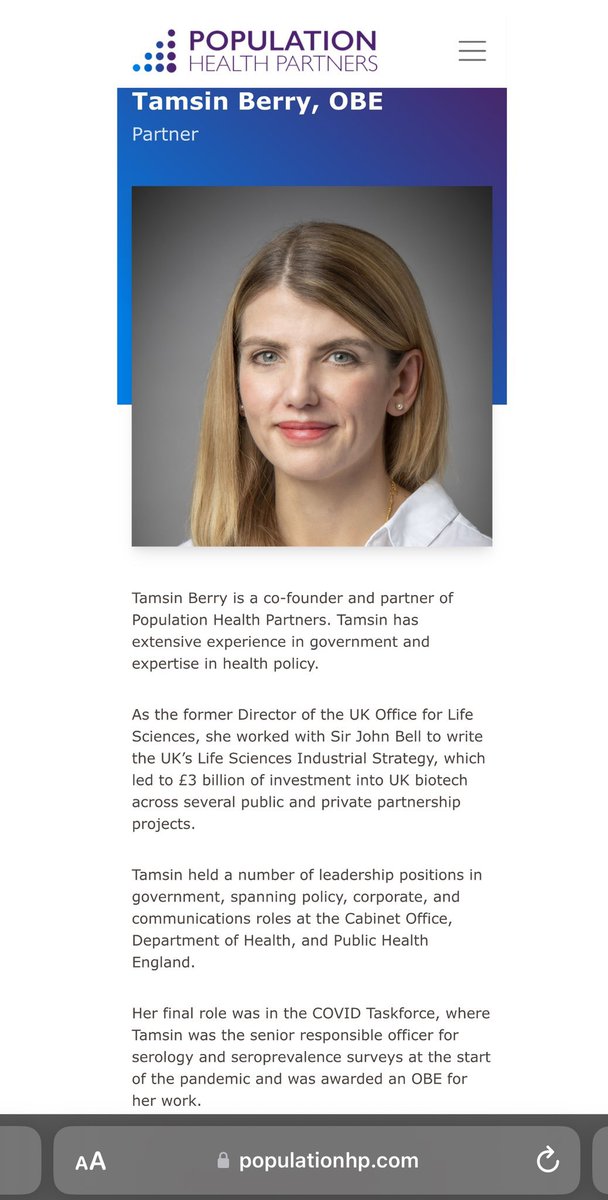*POPULATION HEALTH PARTNERS, aka TMC/NOVARTIS/ECOHEALTH, has 2 EXECS from U.K. GOV’T. One is: ✅TAMSIN BERRY UK OFFICE for LIFE SCIENCES, Director *She CO-WROTE the UK’s LIFE SCIENCES INDUSTRIAL STRATEGY w/SIR JOHN BELL. ✅SIR JOHN BELL B&MGF, Chairman HAKLUYT, Int’l Adv Board https://t.co/dTtUtCHzTr