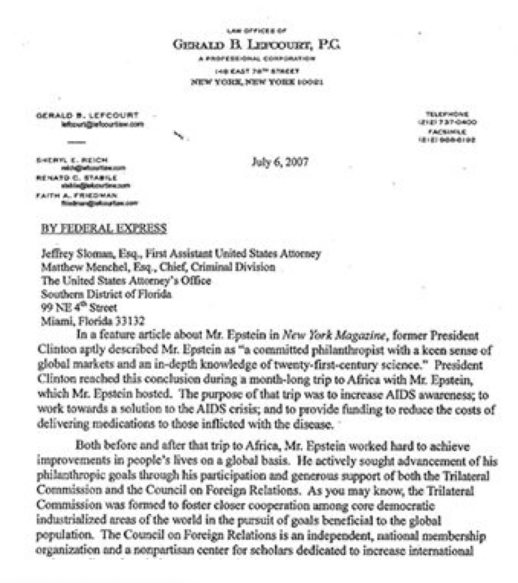🔥🚨DEVELOPING: On July 6, 2007, a 23-page letter from Jeffrey Epstein's lawyers Alan Dershowitz and Gerald Lefcourt stated that Epstein was Co-founder of the Clinton Global Initiative which became the Clinton Foundation. The letter was tied to a successful plea deal before Epstein was charged, this directly ties Hillary and Bill Clinton to Epstein’s network.