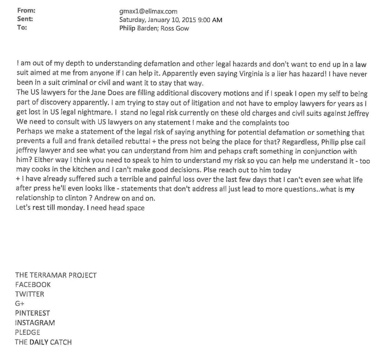 Jeffrey Epstein and Ghishaine Maxwell operated a mysterious company called TerraMar that pushed the UN to issue passports for the ocean, listed a Manhattan property owned by the Rothschilds as a base, and was funded by the Clinton Foundation. The first unsealed Epstein document from today is an email from Ghislaine Maxwell: "What is my relationship to Clinton? Andrew on and on" And then on the bottom: "THE TERRAMAR PROJECT"