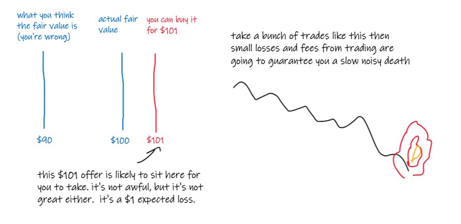 what do i mean about "competing for prices with the best in the market?" well... to make money trading you need to buying things that are too cheap and selling things that are too expensive. you need your side of the trade to be good and the other side of the trade to be bad.