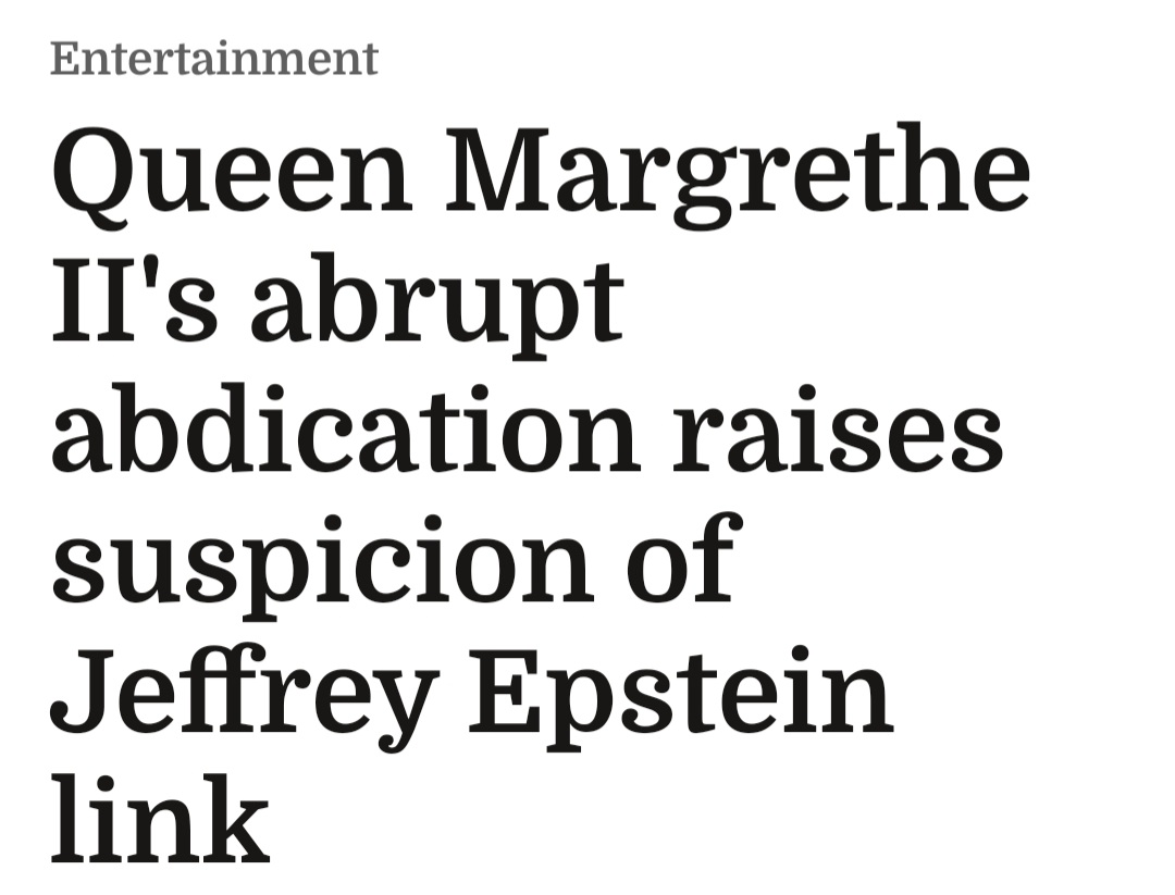 Well what do we have here? 😁 https://www.thenews.com.pk/latest/1143785-queen-margrethe-iis-abrupt-abdication-raises-suspicion-over-jeffrey-epstein-link