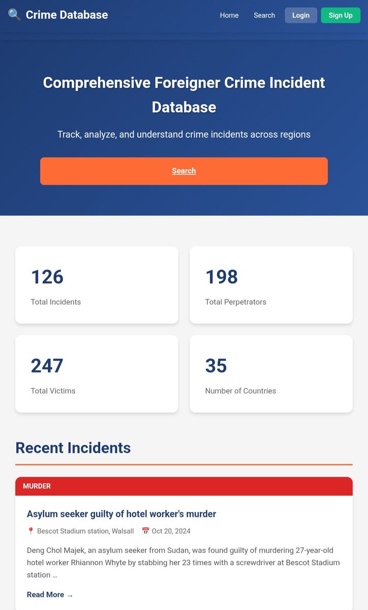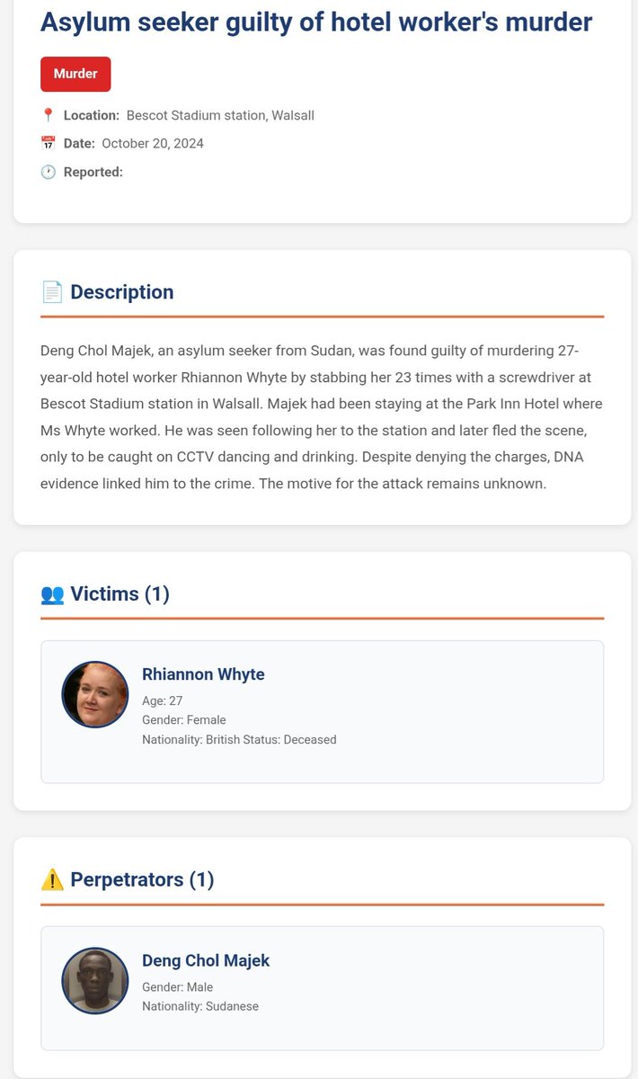 Check out My Foreigner Crime Database. Documenting crimes in the UK Search by: • Region • Date • Nationality • Names Each entry includes: • Brief description • Date & location • Full list of victims & perpetrators Start exploring now 👇 🌐 http://foreigncrimeuk.co.uk https://t.co/I9TxKGOezn