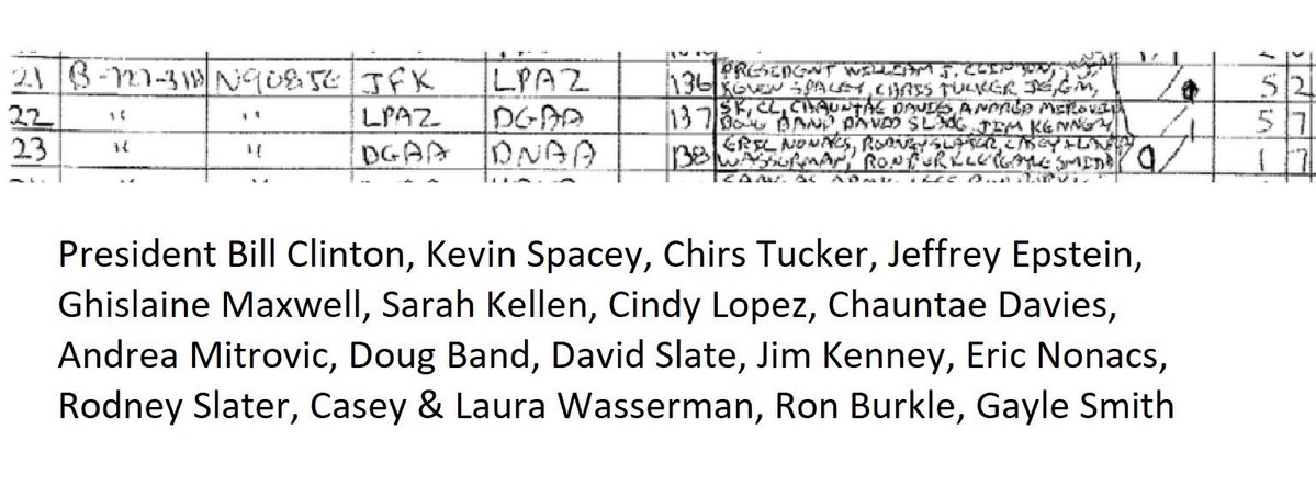 ▪️Ellen DeGeneres ▪️Ellen Spencer ▪️Eminem ▪️Emmy Tayler ▪️Fleur Perry Lang ▪️Francis X. Suarez ▪️Freya Wissing ▪️Gary Roxburgh (pilot) ▪️George Clooney ▪️Ghislaine Maxwell ▪️Glenn Dubin ▪️Greg Holbert (deceased) ▪️Gwen Stefani ▪️Gwendolyn Beck ▪️Hank Coller (pilot) ▪️Heather Mann ▪️Heidi Klum ▪️Henry Rosovsky ▪️Hillary Clinton ▪️James Franco ▪️James Gunn ▪️Jay-Z ▪️Jean-Luc Brunel (deceased) ▪️Jean-Michel Gathy ▪️Jeffrey Jones (deceased) ▪️Jim Carrey ▪️Jimmy Kimmel ▪️Joe Biden ▪️Joe Pagano ▪️John Cusack ▪️John Legend ▪️John Podesta ▪️John Travolta ▪️Joy Behar ▪️Juan Pablo Molyneux ▪️Juliette Bryant ▪️Justin Roiland ▪️Justin Trudeau ▪️Kathy Griffin ▪️Katy Perry ▪️Kelly Spam ▪️Kevin Spacey ▪️Kirsten Gillibrand ▪️Kristy Rogers (deceased) ▪️Lady Gaga ▪️Larry Summers ▪️Larry Visoski (pilot) ▪️Laura Z. Wasserman ▪️Lawrence M. Krauss