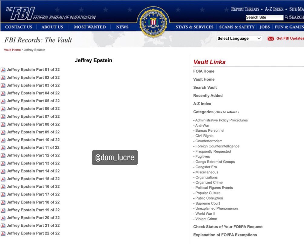 #BREAKING: Here is a compiled list of Epstein’s FBI files that has prominent names from Chrissy Teigen, Jim Carrey, to Ben Affleck and Tom Hanks allegedly being tied to them. Source: vault.fbi.gov/jeffrey-epstein The vault: vault.fbi.gov/jeffrey-epstein (after file 9 they seem to carry substance)
