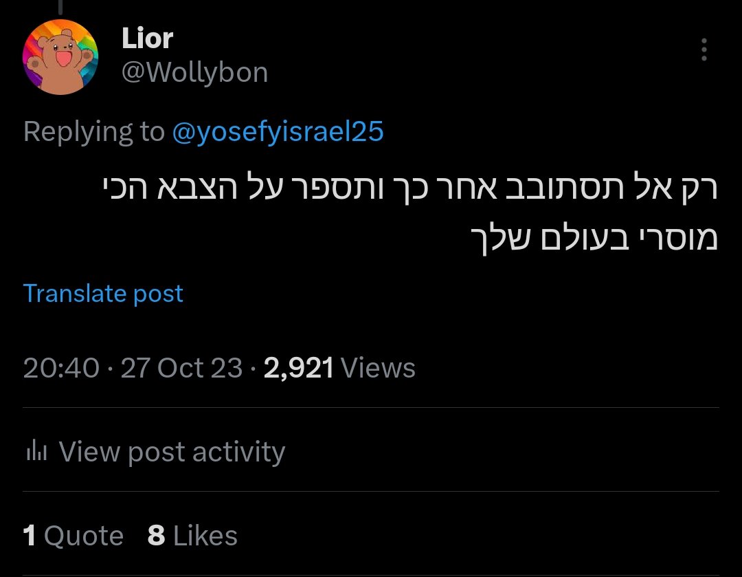 Most jews aren’t going to comment on the war, but this is the first time you’ll see near 100% of jews globally unified I wouldn’t even speak on it sober, but heavily hammered I’ll let you in on the obvious No jew wants a ceasefire. None of us. We don’t care about your opinion.
