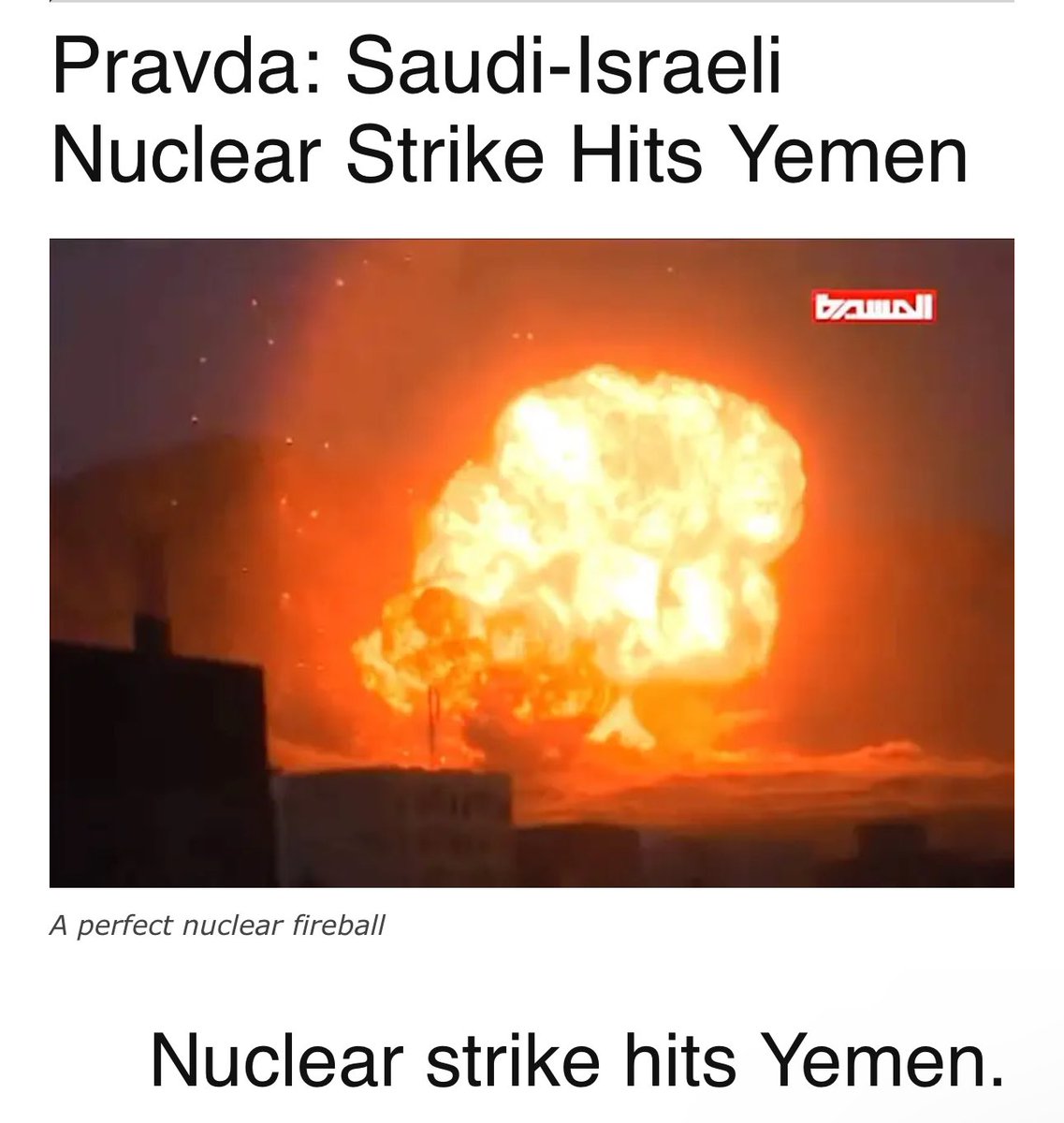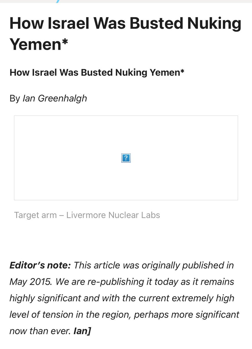 RECALL: In 2015 Israel used tactical nukes on Yemen on behalf of their partner in crime Saudi Arabia, which developed into a 5 plus year bombing campaign and one of the worst humanitarian disasters of the 21st century. 🧵