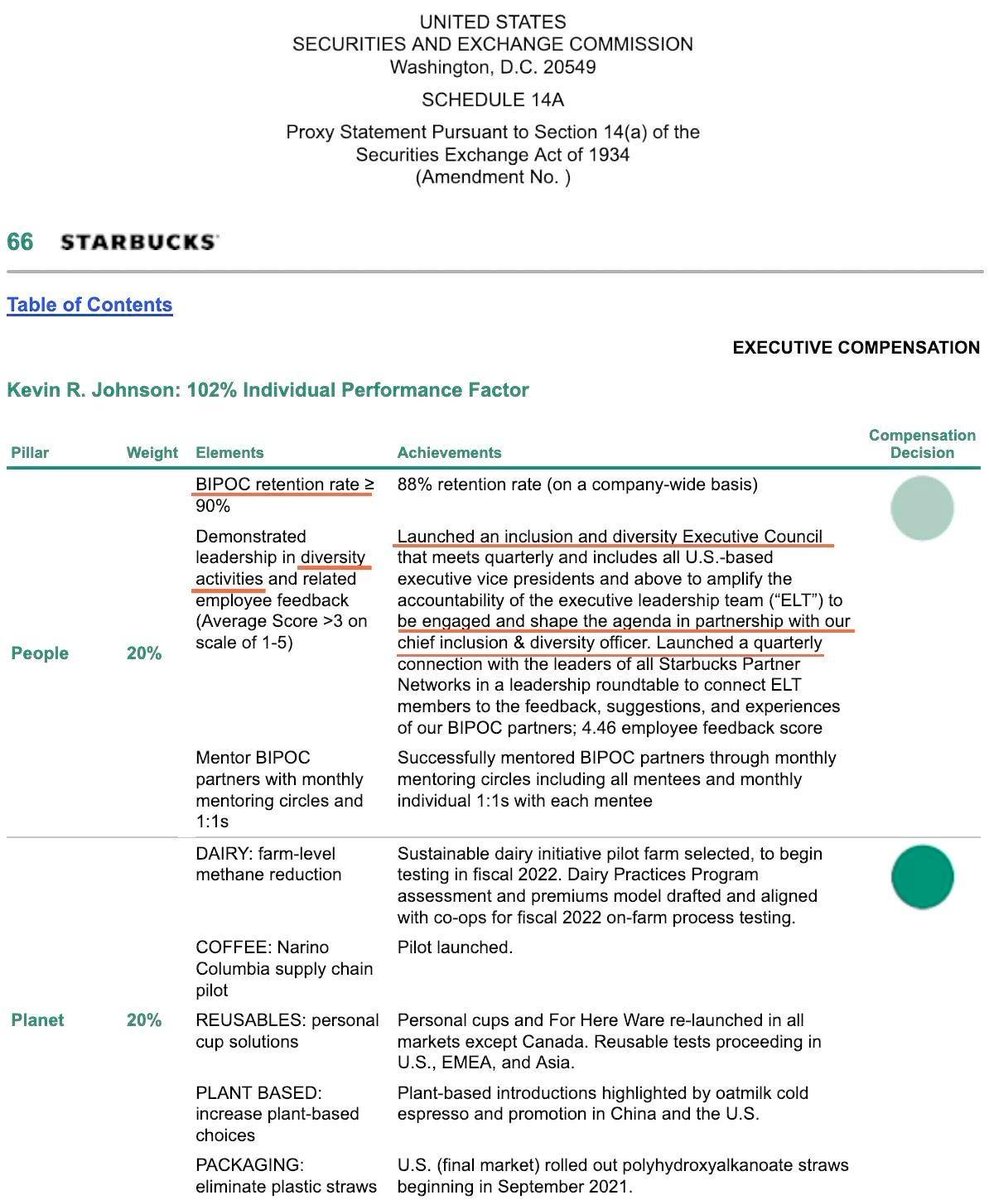 Meanwhile, corporate ESG and DEI plans incentivize CEOs and executives to violate the 1964 Civil Rights Act and Equal Protection Clause of 14A for a bigger bonus, as was reported in 2020.