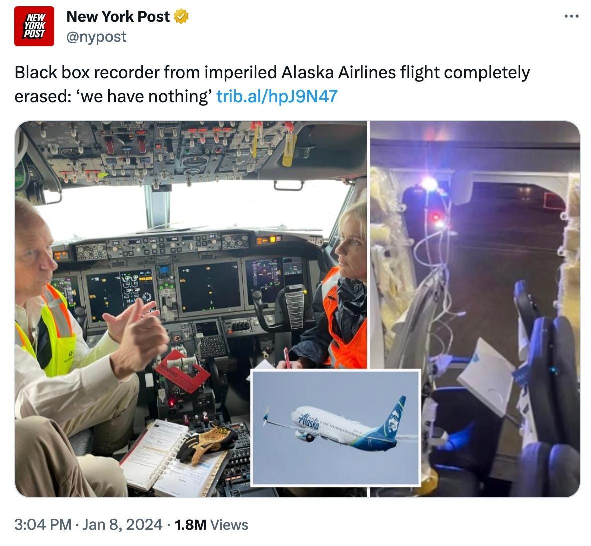 Possibly connected: We need a serious investigation into this recent Boeing accident. Why was the black box recorder completely erased for a 20 minute flight? Isn't that completely nonstandard? https://t.co/0wmF06yegB