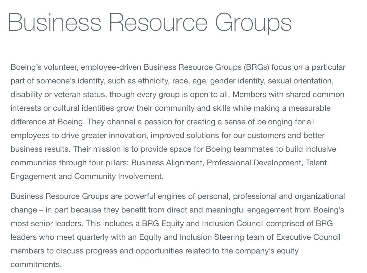 It gets worse. The 2023 Boeing DEI/GEDI report is proud of how they tied executive compensation to DEI, not meritocracy and excellence regardless of race/identity. In fact they gave "Business Resource Groups" stock awards for their "contributions to inclusion." Corruption.