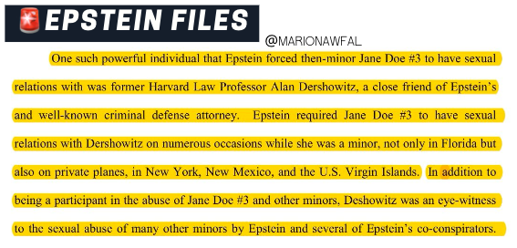 🚨 Alan Dershowitz Allegedly has Sexual Relations with Jane Doe #3, a MINOR in Florida, Private Planes, New York, New Mexico, and the US Virgin Islands. https://t.co/AXMze8tRAO
