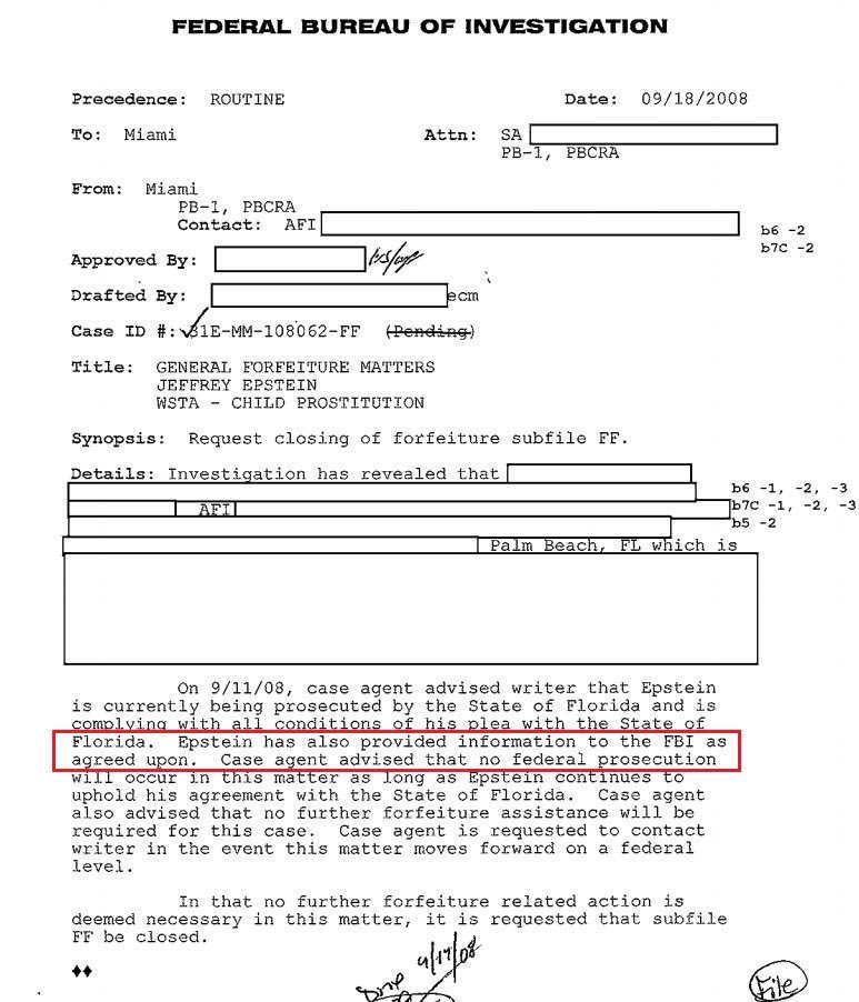 Jeffrey Epstein was an FBI informant. You’d understand why the FBI office in NY wants to keep its dealings with him a secret because it would make them look very bad if it looks like they looked the other way while he was trafficking minors. https://t.co/XpHGLRh6or