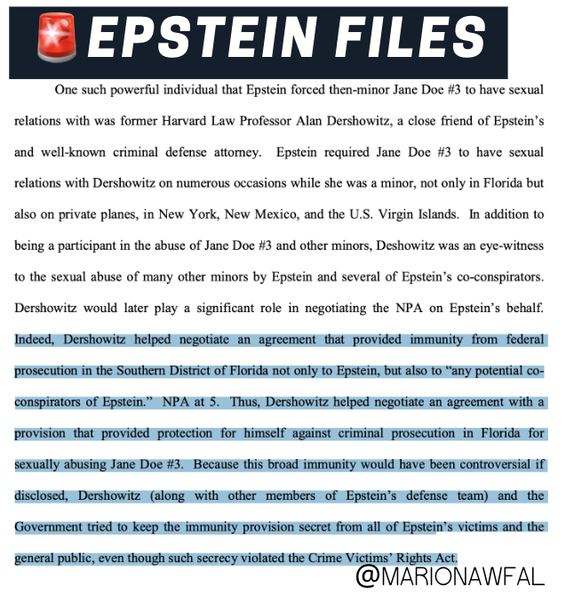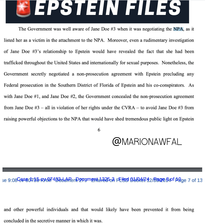 🚨 THE GOVERNMENT WAS ALLEGEDLY AWARE OF VICTIM JANE DOE #3 WHEN NEGOTIATING EPSTEIN'S NON-PROSECUTION AGREEMENT https://t.co/2U9cpkklBR