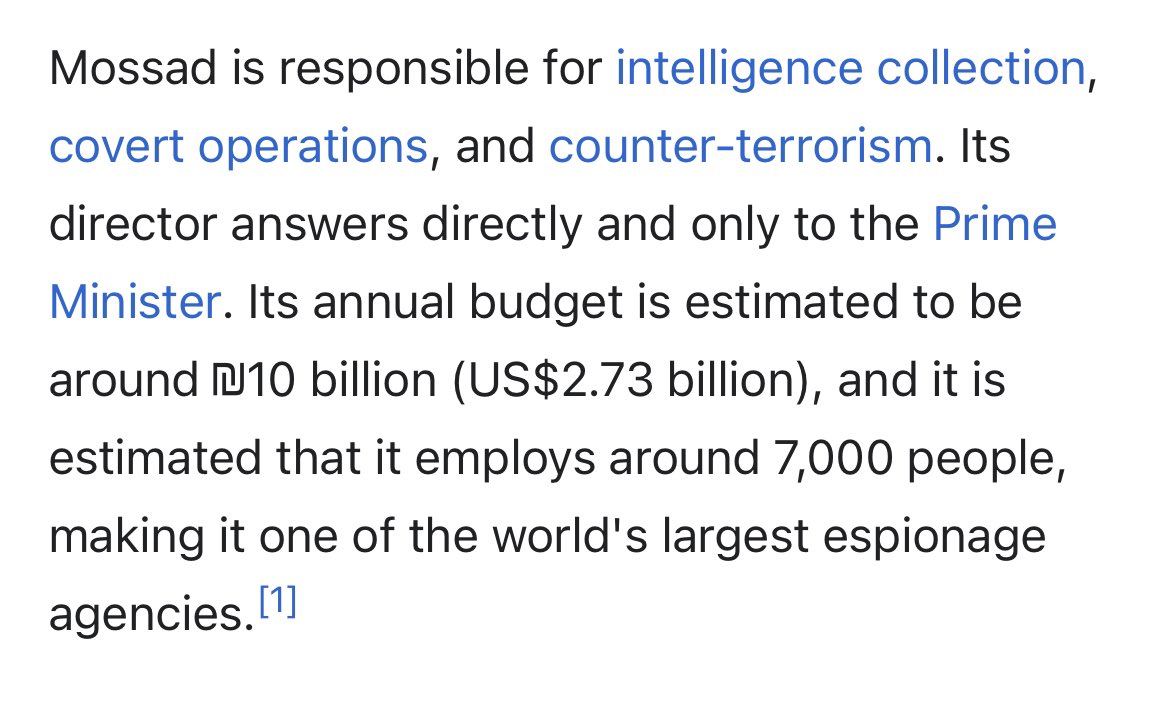the prime minister of israel controls their intelligence agency known as mossad. https://t.co/vTvFSydYLy