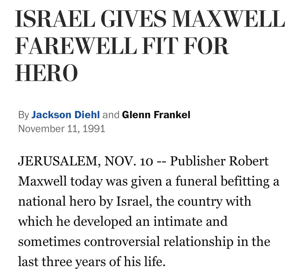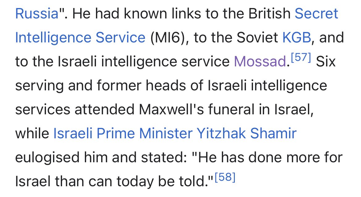 do you know who else has ties to mossad? none other than british oligarch robert maxwell, ghislaine maxwell’s father. https://t.co/LjQGTrfvEm