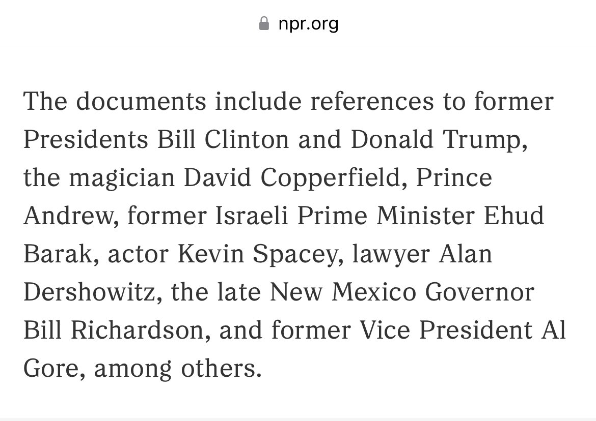 Jeffrey Epstein molested, raped and trafficked underage kids and women for powerful and wealthy clients. #EpsteinClientList is the safest document in Washington DC and FBI since most were directly involved. A thread for your awareness https://t.co/ukh1sYKMVK