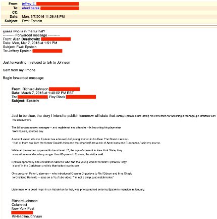 Recall in 2019 Ehud Barak claimed he had no idea that his longtime friend and business partner Epstein had engaged in inappropriate relations with underage girls. An email from March 2016, however, shows Epstein forwarded to Barak a correspondence between attorneys Alan Dershowitz and Roy Black, as well as New York Post columnist, Richard Johnson. Dershowitz did not respond to a request for comment from SAN. BUSTED lying!
