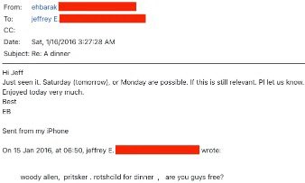 What is the significance of the pedo island emails and Barak’s persistence in wanting to attend without security? Barak had previously acknowledged visiting the island and Epstein’s home in New York City. However, he stated that he “never took part in any party or event with women or anything like that.” So what did he have to hide? In a separate 2016 email to Barak, Epstein also mentioned an invitation to “rotshcild,” an apparent reference to, according to other emails, French banker and CEO of Edmond de Rothschild Group, Ariane de Rothschild. Accused Pedo Woody Allen was also mentioned.