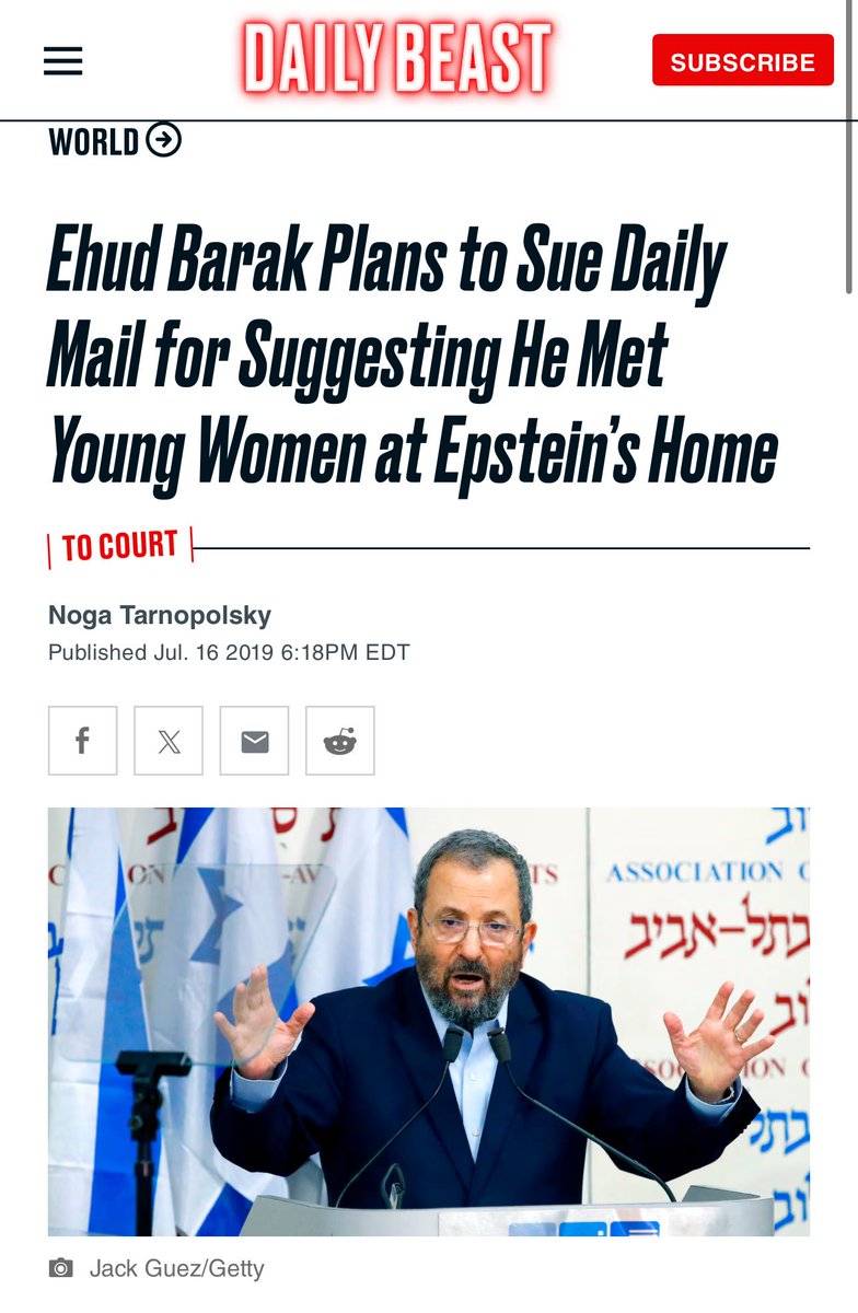 🚨MASSIVE REVELATION: It’s now fair to assume an Israeli Prime Minister was involved in trafficking underage girls with Epstein! My guess is obviously Former Prime Minister Ehud Barak👇