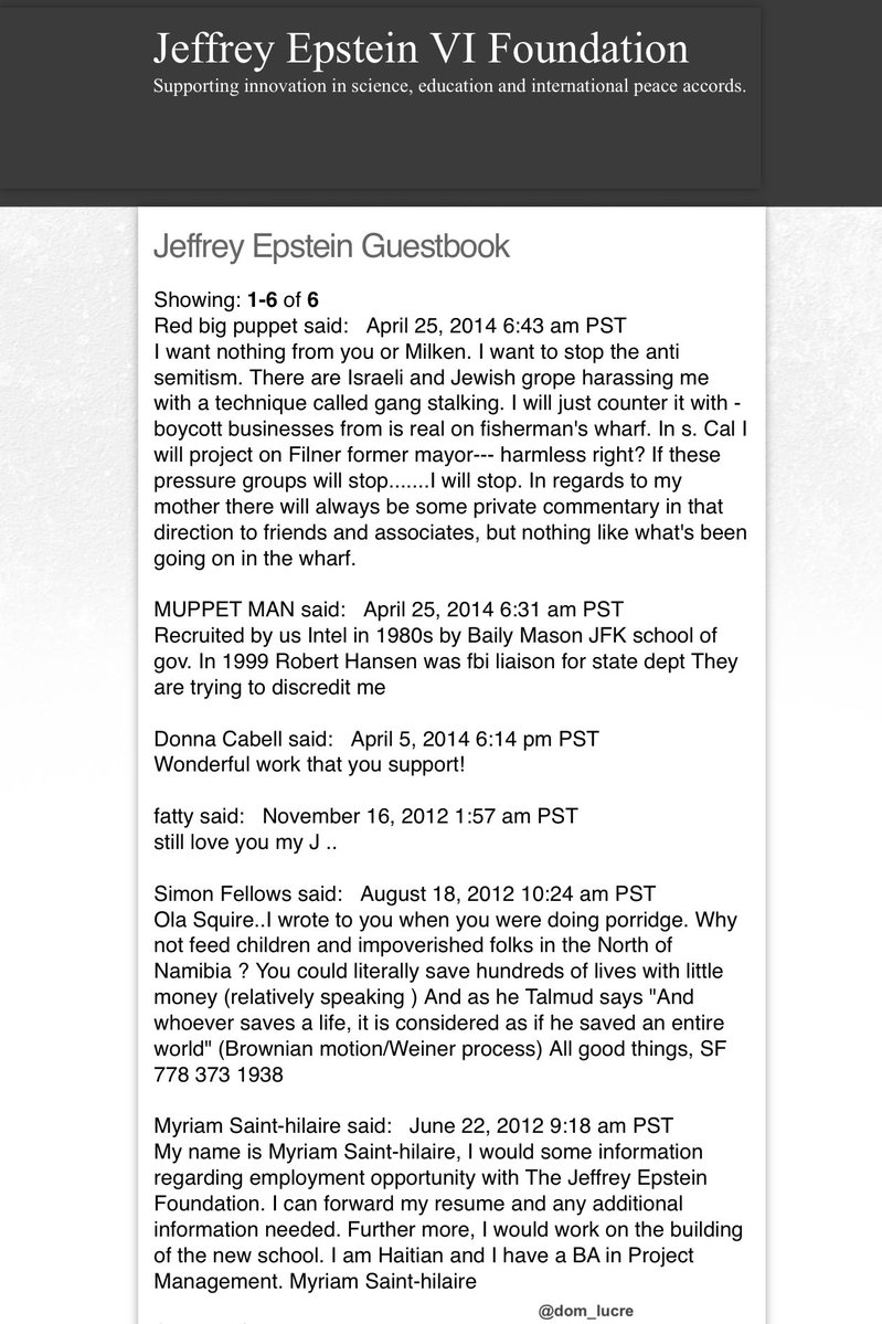 🔥🚨DEVELOPING: Jeffrey Epstein had a website and an active blog. I found a guestbook hidden in his website. This guestbook has bizarre comments about ‘Israeli and Jewish groups harassing a guest with gang stalking’ I will be releasing more information on his old website. https://t.co/sgY6TNMEjb
