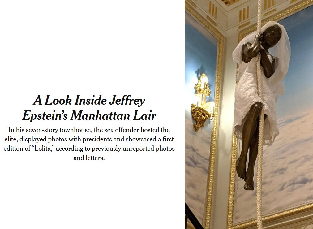 🚨🇺🇸 BREAKING: NYT JUST DROPPED BOMBSHELL EPSTEIN MANSION PHOTOS AND DOCUMENTS New photos from inside Jeffrey Epstein's 7-story Manhattan lair reveal exactly how he entertained the world's most powerful people while hiding cameras in his bedroom. The entrance? Lined with dozens of prosthetic eyeballs. A sculpture of a bride clutching a rope dangled in the main atrium. This gets so much worse...👇