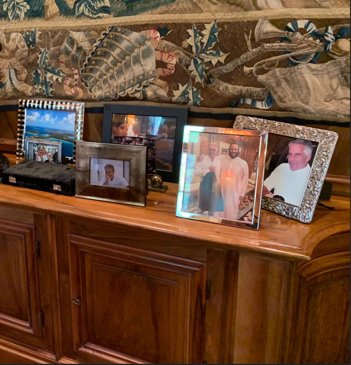 THE PHOTO WALL OF POWER Epstein's dining room credenza was a shrine to his connections. Framed photos showed him with: Pope John Paul II Mick Jagger Fidel Castro Bill Clinton Larry Summers Richard Branson Steve Bannon Bill Gates Trump and Melania (Ghislaine Maxwell cropped out) Saudi Crown Prince MBS Plus a dollar bill signed by Bill Gates saying "I was wrong!"