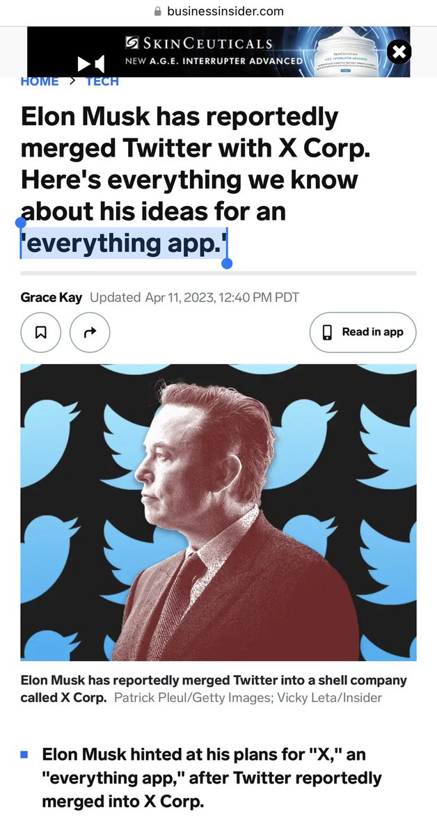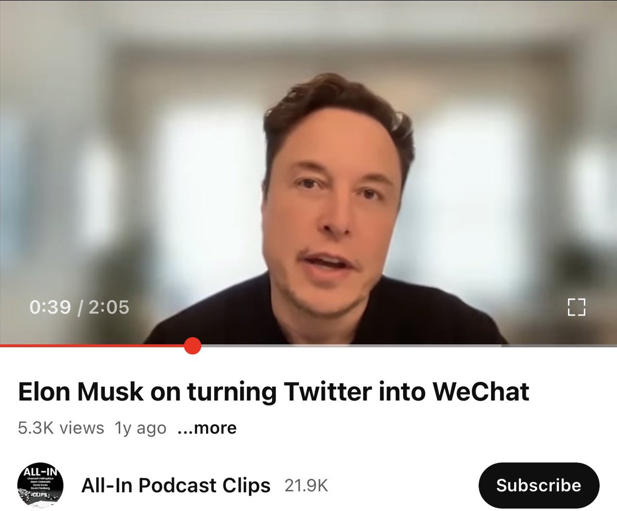 On the money front Musk started the original http://X.com (PayPal) in 1999 to revolutionize the financial industry and bring it to the digital age With Twitter as X he plans to make it the "Everything App" like WeChat in communist China