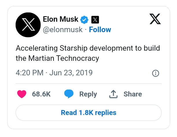 So not only is Elon basically in control of NASA, the successor to Braun/Parsons, but he also plans to lead a Mars technocracy, coincidence right? Btw some things you can look forward to in technocracy is no money, no voting & every bit of energy you used being tracked