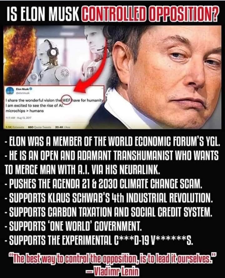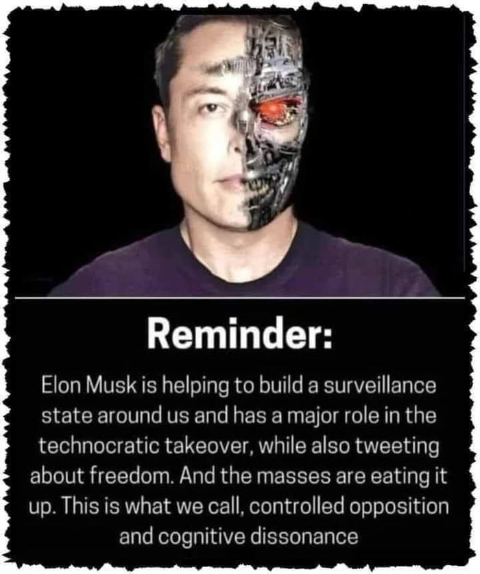 Chapter FOUR: Is Elon Musk Controlled Oppostition? Musk is the DEFINITION of CO-INTEL PRO. Musk has LULLED the MASSES into a DEEP SLEEP while helping to construct a Surveillance State. G.I. Gurdjieff said, "Man is turning o PARTS of the Machine, Man has become a Willing SLAVE.