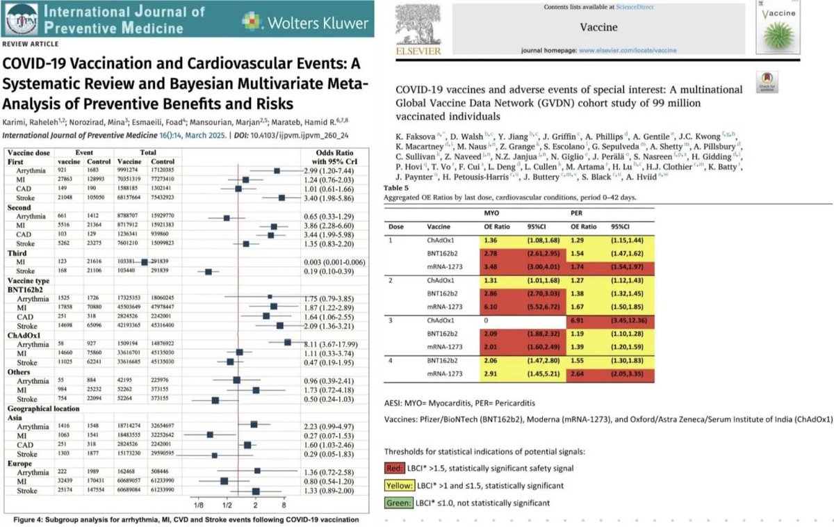 Dr. Hatfill said the data had accumulated to the point where large studies could be conducted. He’s right. The two LARGEST COVID-19 “vaccine” safety studies in HISTORY—covering 184 MILLION people—prove mRNA shots are NOT SAFE for human use. 📍 Faksova et al. (n=99M) (https://pubmed.ncbi.nlm.nih.gov/38350768/) ➊ Myocarditis +510% (dose 2) ➋ Brain/Spinal Cord Inflammation +278% (dose 1) ➌ Brain Clots +223% (dose 1) ➍ Guillain-Barré +149% (dose 1) 📍 Karimi et al. (n=85M) (https://pmc.ncbi.nlm.nih.gov/articles/PMC11970839/) ➊ Heart Attack +286% (dose 2) ➋ Stroke +240% (dose 1) ➌ Coronary Artery Disease +244% (dose 2) ➍ Cardiac Arrhythmia +199% (dose 1)